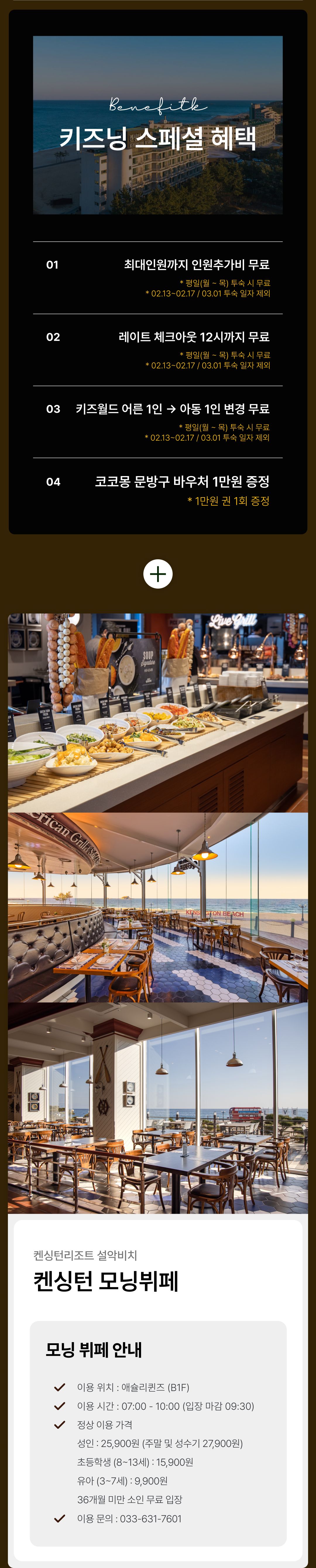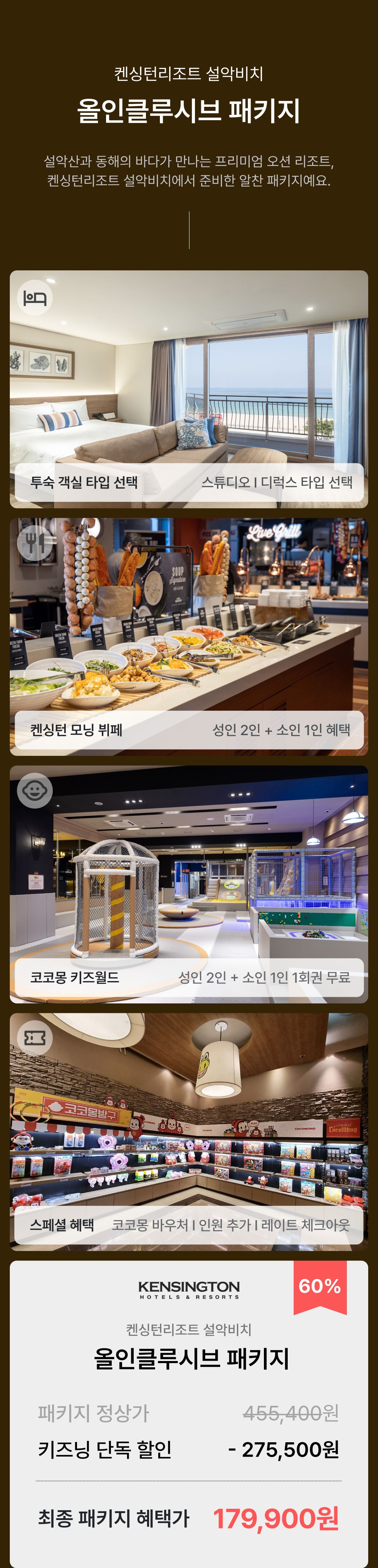[켄싱턴리조트 설악비치] 조식 패키지 (객실 + 모닝 뷔페 + 키즈월드 + 1만원 상품권 + 스페셜 혜택)