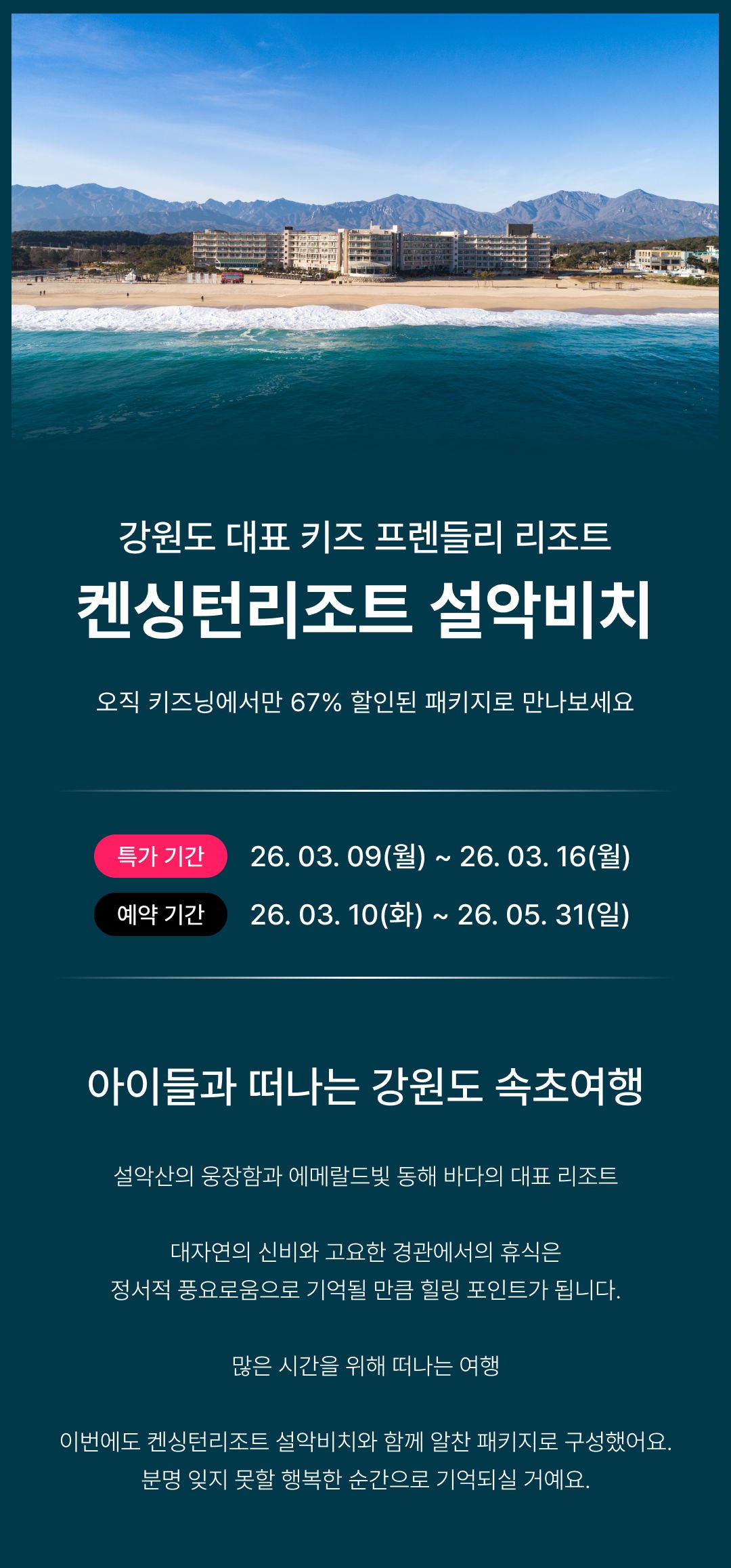 [켄싱턴리조트 설악비치] 봄바다 여행 패키지 (객실 + 키즈월드 + 2만원 상품권 + 스페셜 혜택)